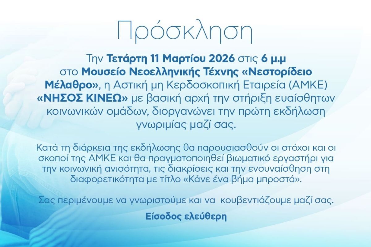 Η Αστική Μη Κερδοσκοπική Εταιρεία ΝΗΣΟΣ ΚΙΝΕΩ δραστηριοποιείται στη Ρόδο και στα Δωδεκάνησα με βασικό σκοπό την πολύπλευρη ενδυνάμωση κοριτσιών και νέων γυναικών, με έμφαση σε άτομα που βρίσκονται σε ευάλωτες κοινωνικές συνθήκες.